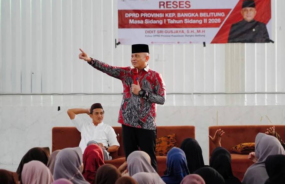 TerabasNews, KOBA, BANGKA TENGAH – Ketua Dewan Perwakilan Rakyat Daerah (DPRD) Provinsi Kepulauan Bangka Belitung, Didit Srigusjaya, memberikan semangat sukses kepada ratusan santri dan santriwati Pondok Pesantren (Ponpes) Al Muhajirin, Koba, pada Minggu (18/1/2026). Kegiatan ini merupakan bagian dari Reses Sidang I Masa Sidang II Tahun 2026.