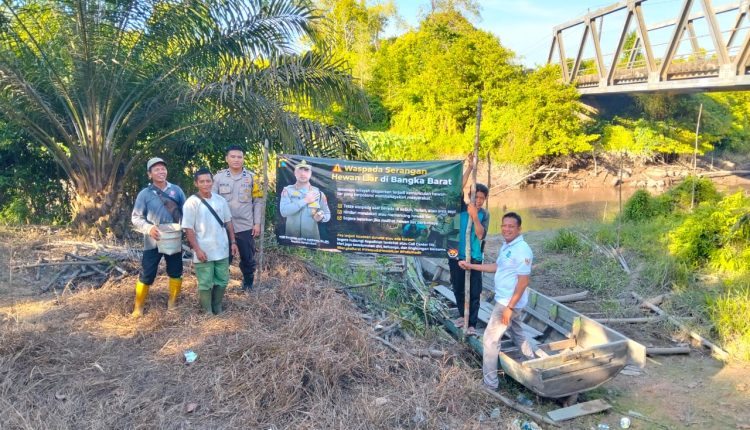 Polres Bangka Barat Pasang Spanduk Peringatan di Aliran Sungai Peradong, Kapolres, Akan Petakan Titik Rawan Buaya