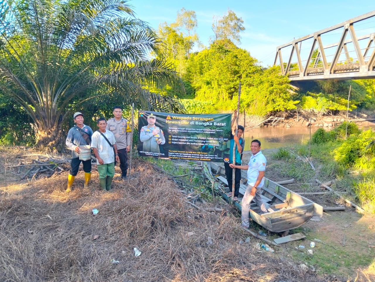 TerabasNews, Polres Bangka Barat memasang spanduk imbauan waspada serangan hewan liar, khususnya buaya, di sekitar aliran sungai Desa Peradong, Dusun 2 Menggarau, Kecamatan Simpang Teritip, Rabu (11/2/2026) sore.