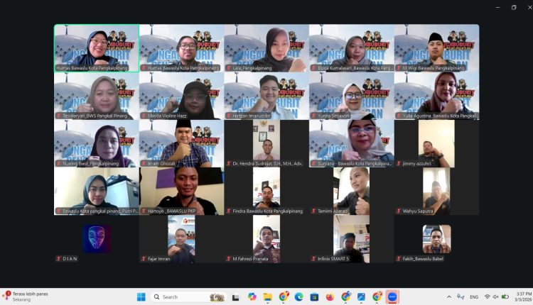Kegiatan yang berlangsung melalui Zoom tersebut diikuti jajaran pimpinan dan staf Bawaslu Kota Pangkalpinang, perwakilan Bawaslu Provinsi Kepulauan Bangka Belitung, serta peserta dari berbagai daerah.