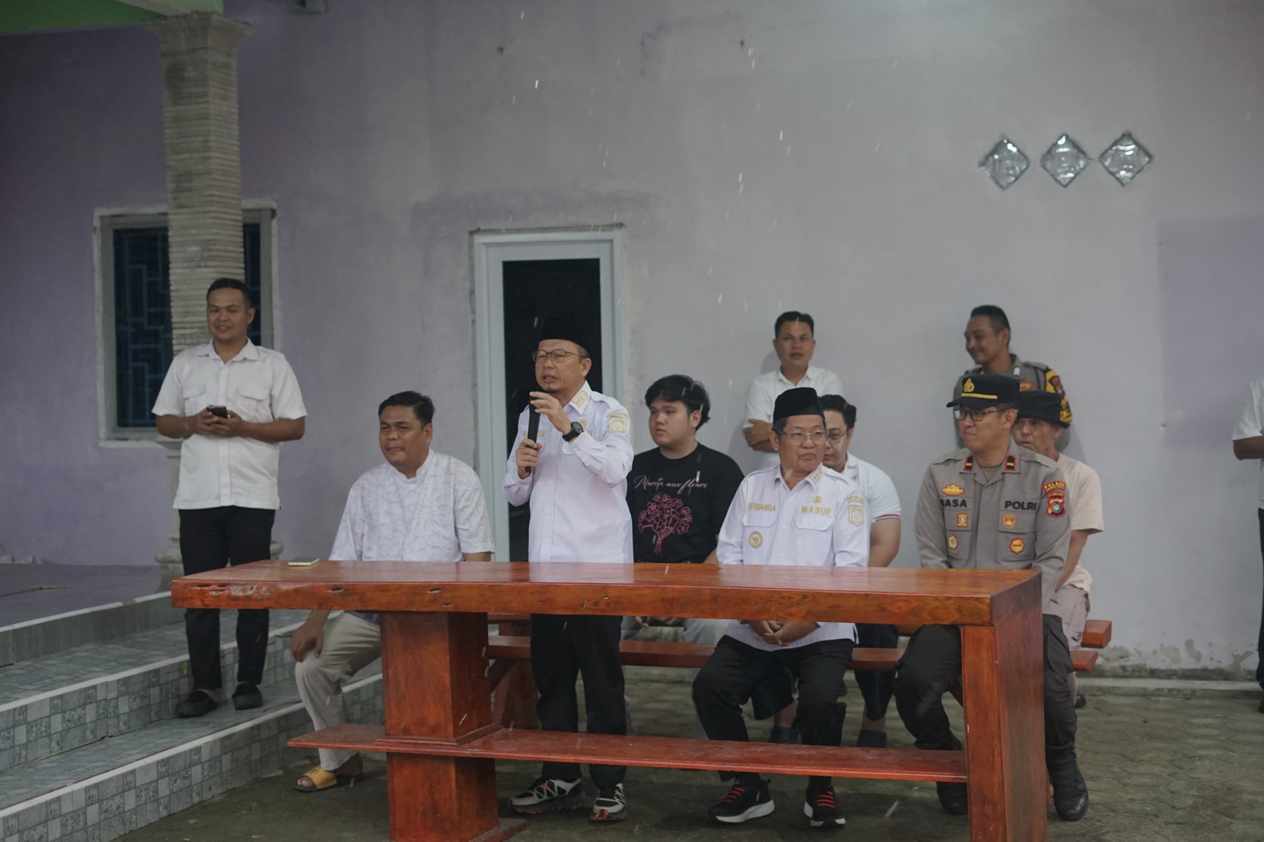 TerabasNews, BANGKA TENGAH – Hujan deras yang mengguyur Desa Perlang, Kecamatan Lubuk Besar, Rabu (4/3/2026), tak menyurutkan langkah warga untuk berkumpul, di tengah cuaca yang kurang bersahabat itu, Bupati Bangka Tengah, Algafry Rahman, bersama Wakil Bupati Efrianda tetap hadir menyapa dan menyalurkan bantuan.