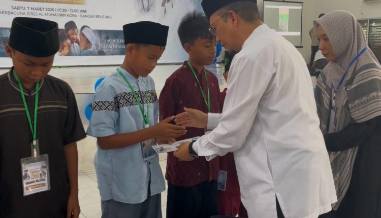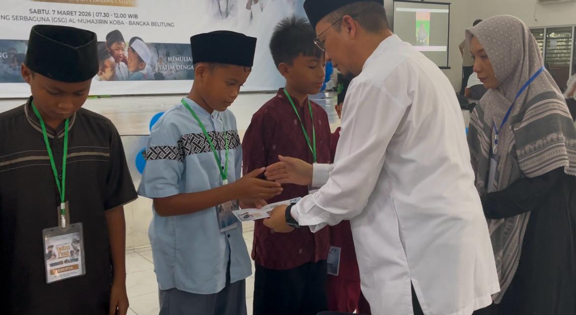 Kegiatan tersebut dilaksanakan di Gedung Serba Guna Pondok Pesantren Al-Muhajirin Koba, Sabtu (7/3/2026), dengan menghadirkan ratusan anak yatim dari berbagai daerah.