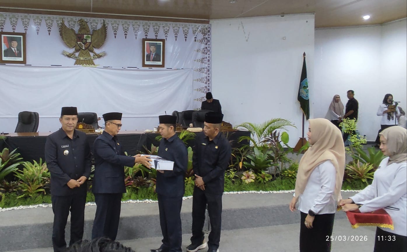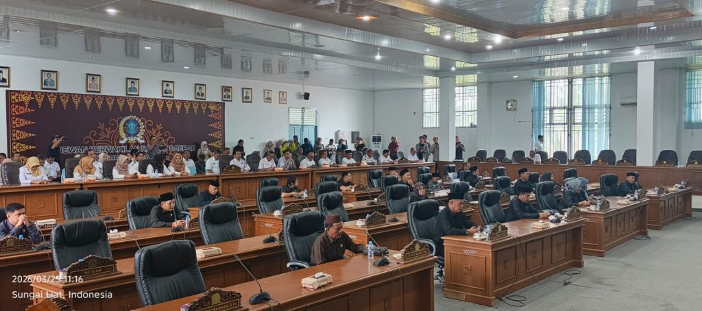 TerabasNews, DPRD Kabupaten Bangka pada Rabu (25/03/2026) menggelar Rapat Paripurna Penyampaian LKPJ Bupati Bangka TA 2025. Rapat dipimpin langsung oleh Ketua DPRD Kabupaten Bangka, Jumadi, S.IP., dan dihadiri oleh Bupati Bangka Fery Insani, S.E., M.M., Wakil Bupati Bangka Syahbudin, S.IP., M.Trip., Wakil Ketua I DPRD Hendra Yunus, S.E., serta segenap FORKOPIMDA, Plt. Sekretaris Daerah, para Asisten, Kepala Dinas, Kepala Kantor, Camat, Lurah, Dharma Wanita, insan pers, serta para undangan lainnya.