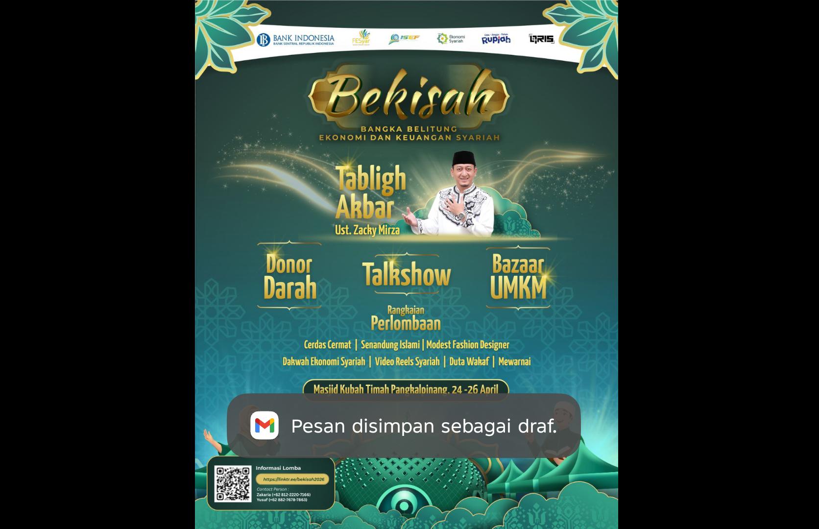 Karenanya, Kantor Perwakilan Bank Indonesia Provinsi Kepulauan Bangka Belitung turut mengajak warga Bangka Belitung untuk hadir dan menyemarakkan festival ekonomi dan keuangan syariah terbesar di Bangka Belitung pada 24 sampai dengan 26 April 2026. (**)