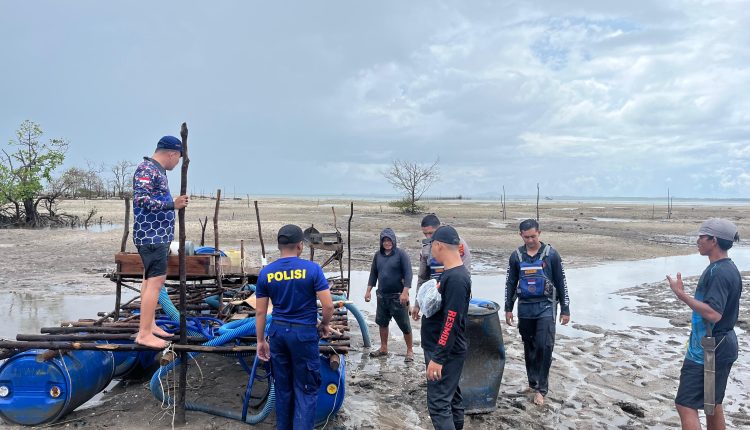 TerabasNews, Tim gabungan Polres Belitung melakukan penertiban aktivitas tambang pasir timah diwilayah perairan laut Dusun Ulim Desa Lassae Kecamatan Membalong Kabupaten Belitung, Senin (20/4/26).