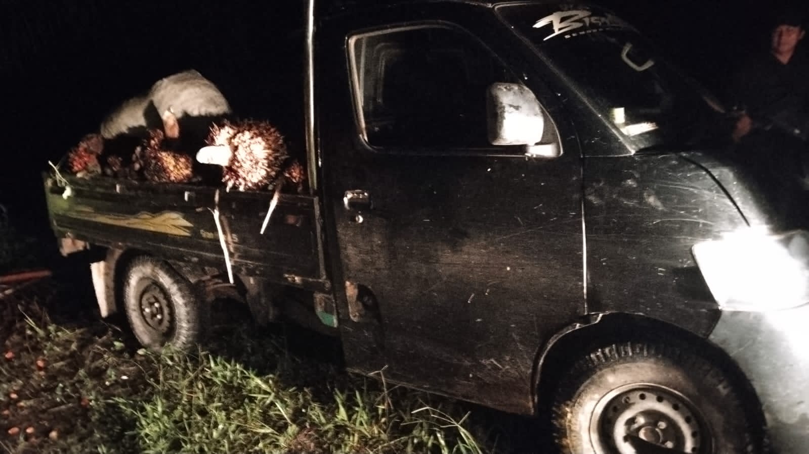 Diduga Angkut Sawit Curian, Mobil Grand Max Hitam Ditinggal Sopir Saat Polisi Datang