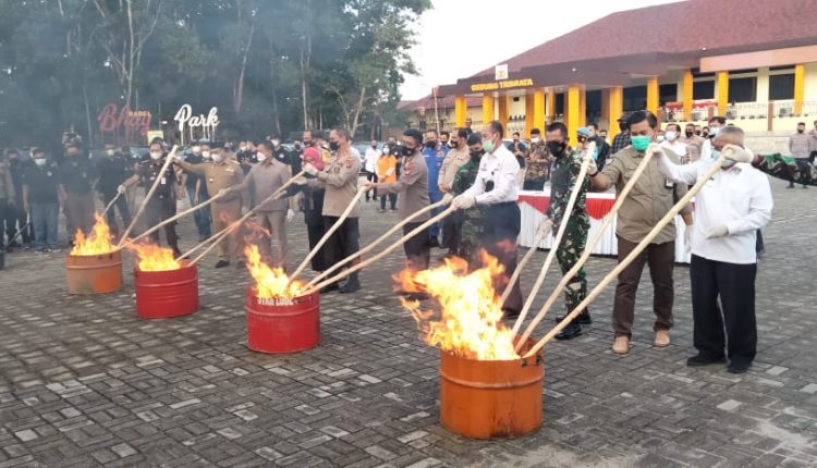 Ratusan Botol Miras dan 29 Kg Ganja Kering Di Musnahkan Polda Babel